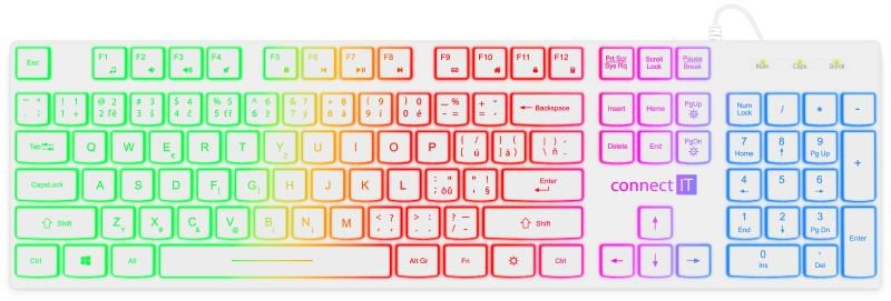 CONNECT IT kancelářská podsvícená klávesnice Chocolate RNBW, CZ + SK verze, bílá