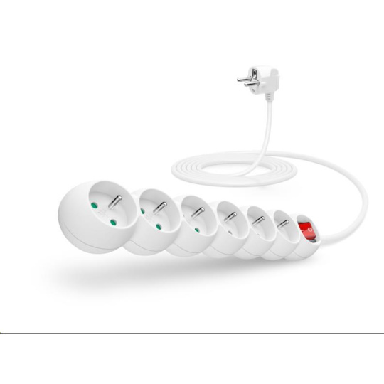 CONNECT IT prodlužovací kabel 230 V, 6 zásuvek, 3 m, s vypínačem (bílý)