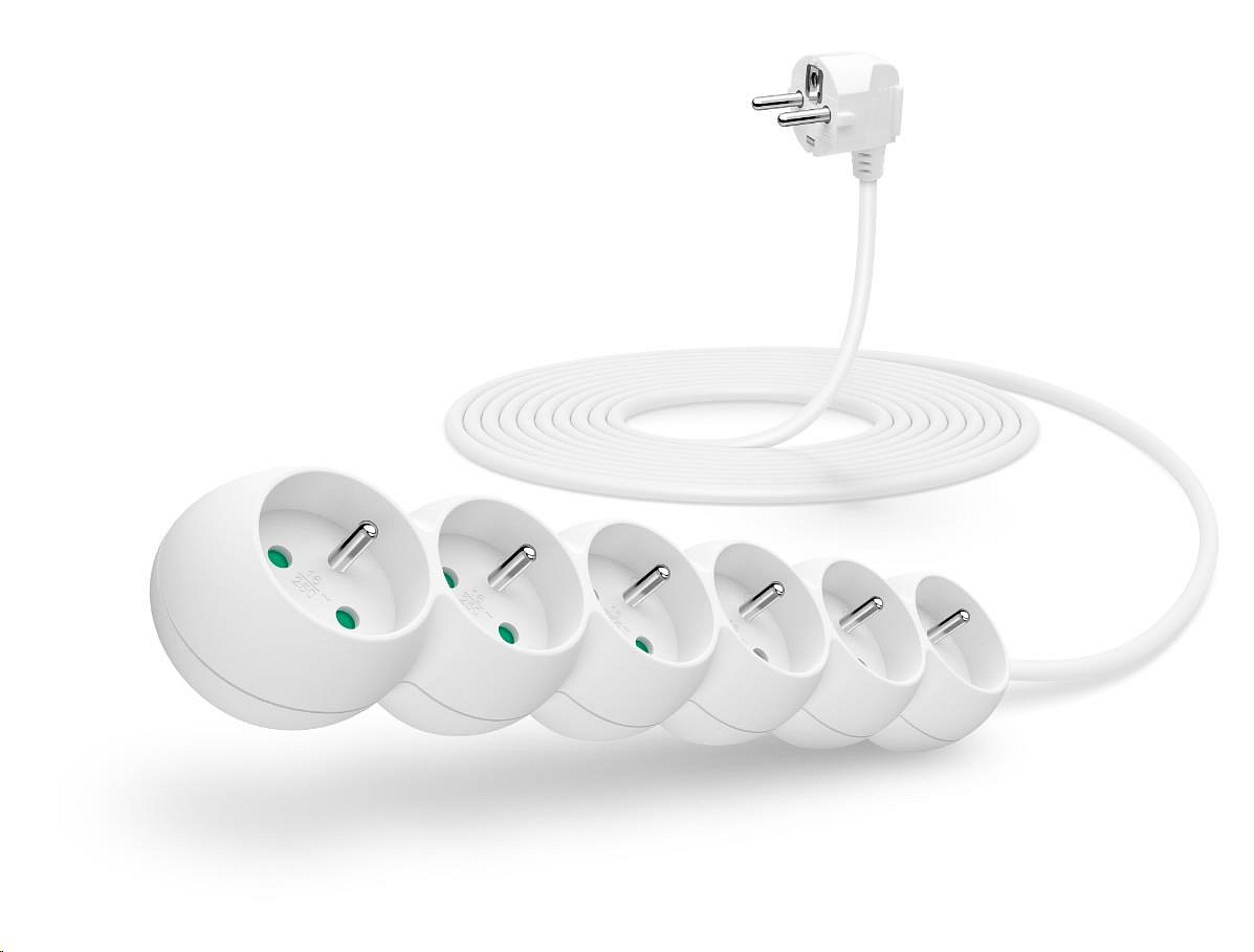 CONNECT IT prodlužovací kabel 230V, 6 zásuvek, 5 m, bez vypínače (bílý)