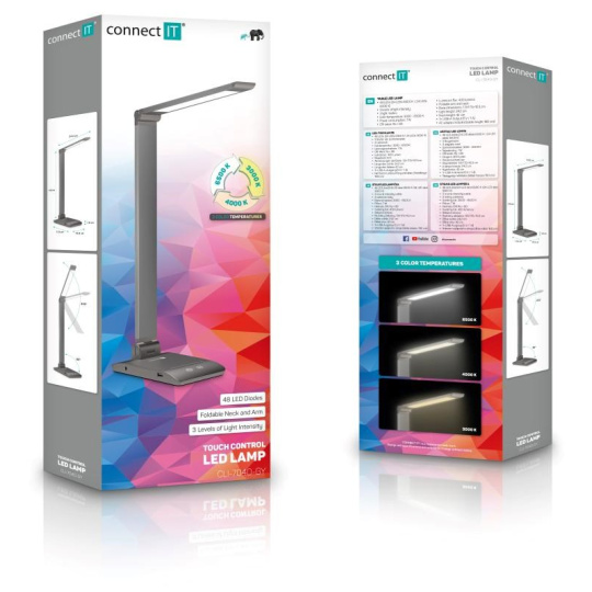 CONNECT IT Stolní LED lampa Bright, USB-A, šedá