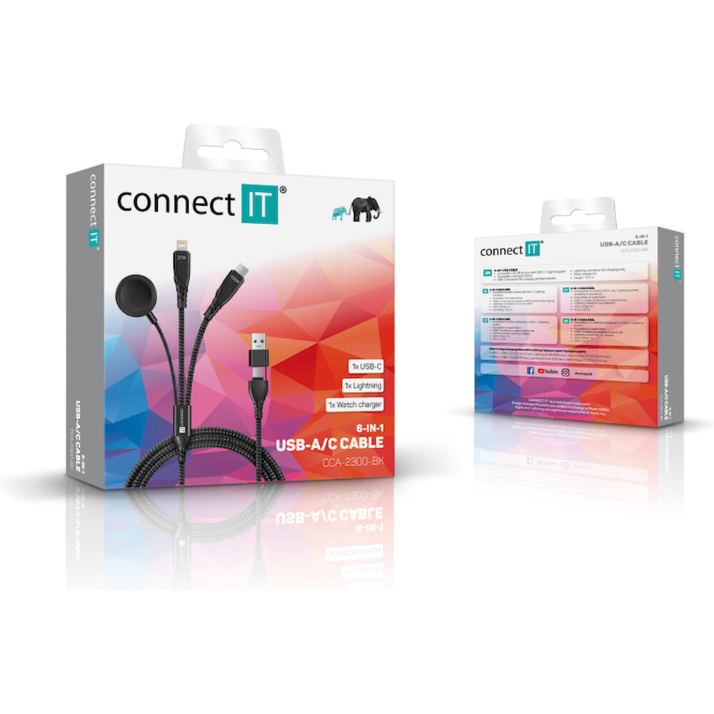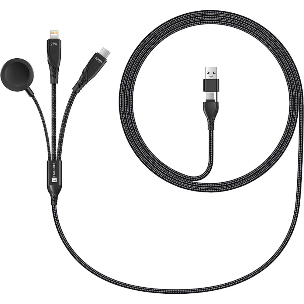 CONNECT IT Wirez 6in1 1x USB-C 1x Lightning 1x Watch charger 1,25 m černý