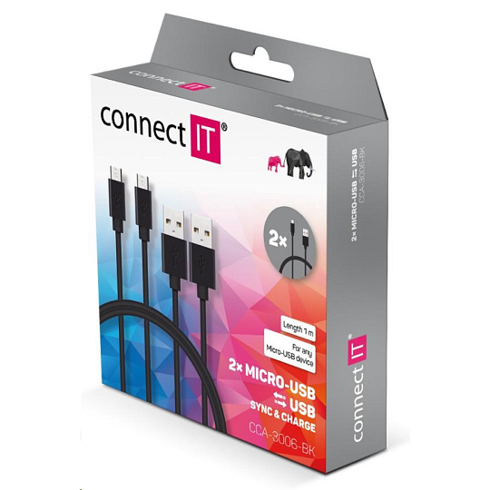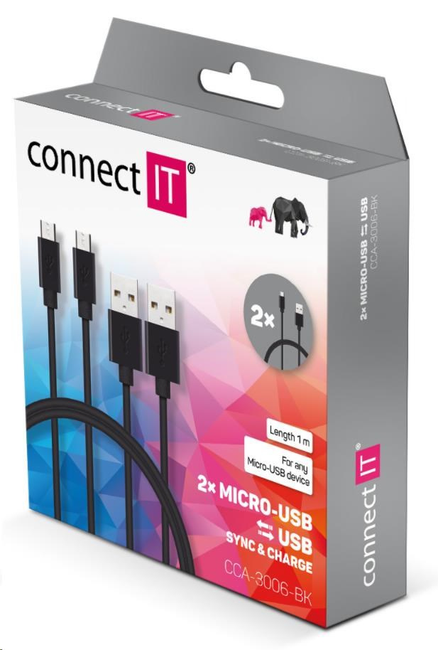 CONNECT IT Wirez Micro USB - USB, černý, 1 m (2 ks v balení)