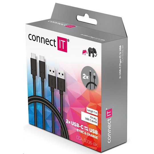 CONNECT IT Wirez USB-C (Type C) -> USB-A, USB 3.1 Gen 1, černý, 1 m (2 ks v balení)