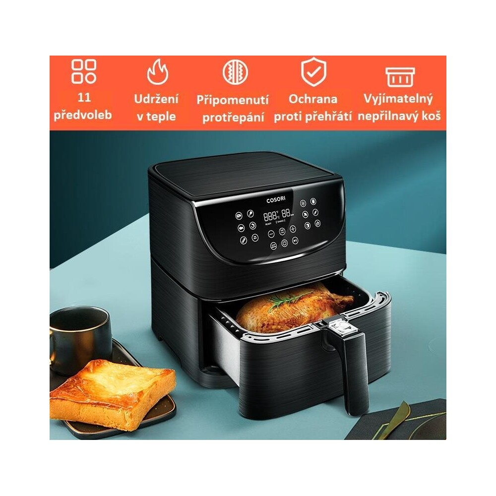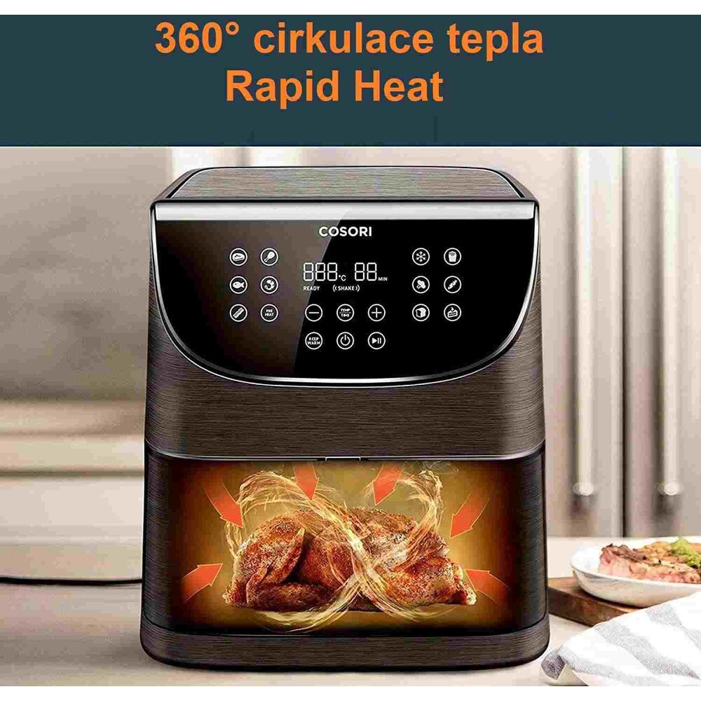 Cosori CP158-AF PREMIUM horkovzdušná fritéza 5,5L + 5x špíz a gril. rošt černá
