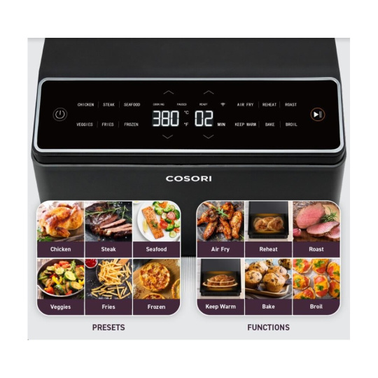 Cosori Dual Blaze 6,4L SMART horkovzdušná fritéza + 5x špíz a gril. rošt šedá