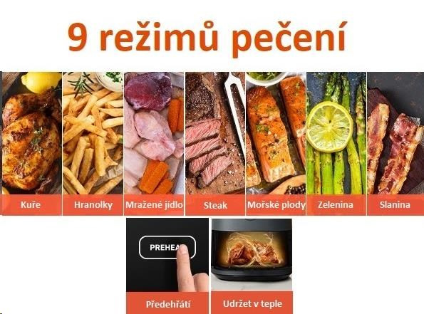 Samozřejmostí je také možnost manuálního nastavení teploty v rozmezí 75-230°C a doby přípravy jídla (až 60 minut).