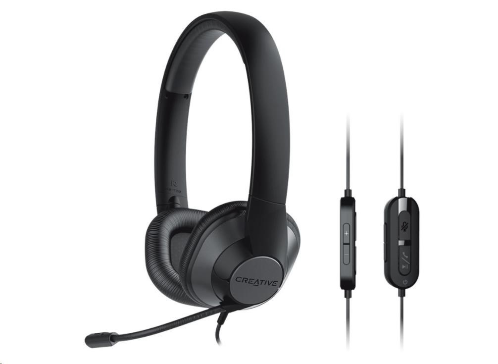 Creative HS-720 V2 má vše pro pracovní telefonáty: mikrofon s potlačením šumu, odezvu mikrofonu pro kontrolu hlasitosti a integrované dálkové ovládání s tlačítkem ztlumení mikrofonu a příjmu hovoru.