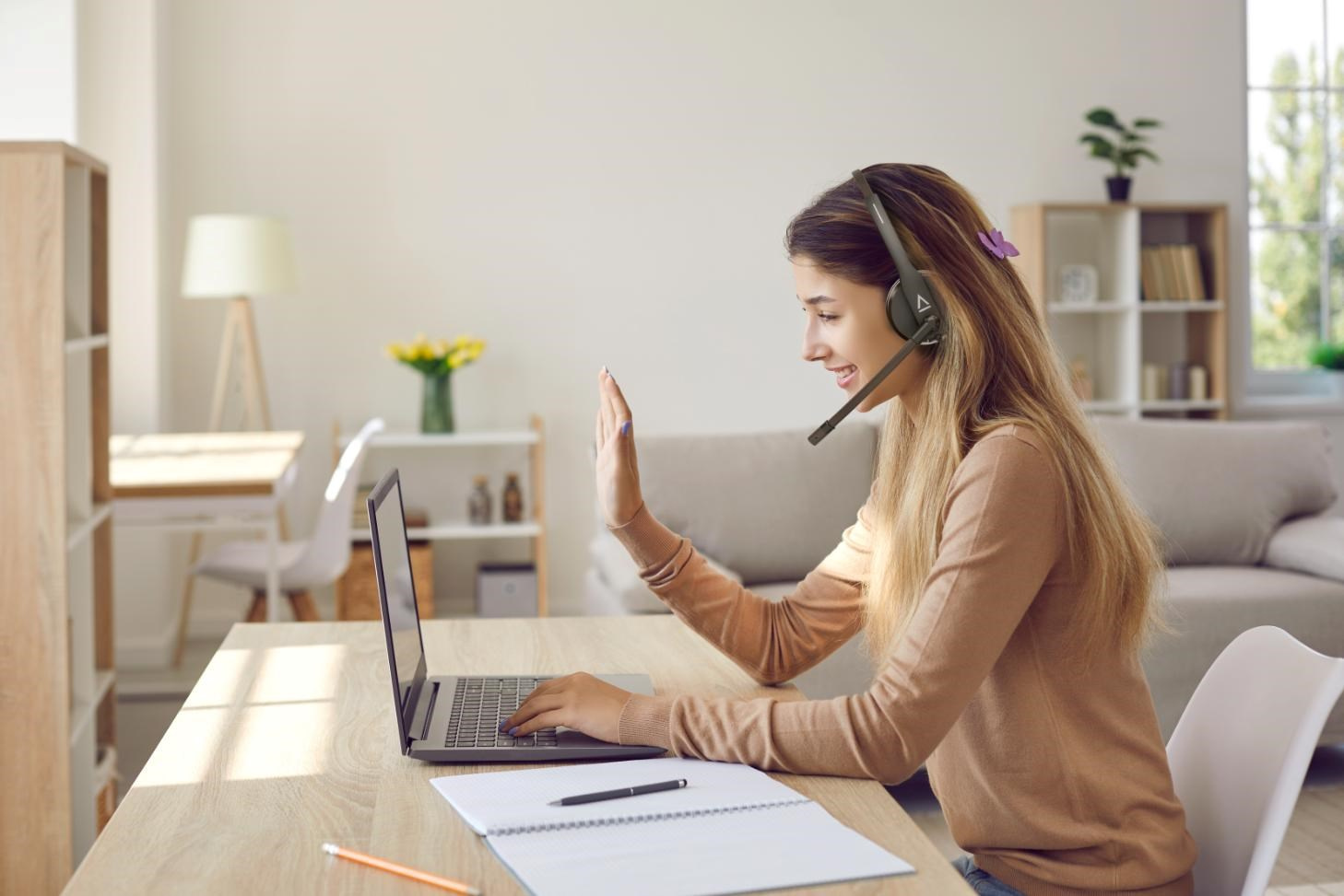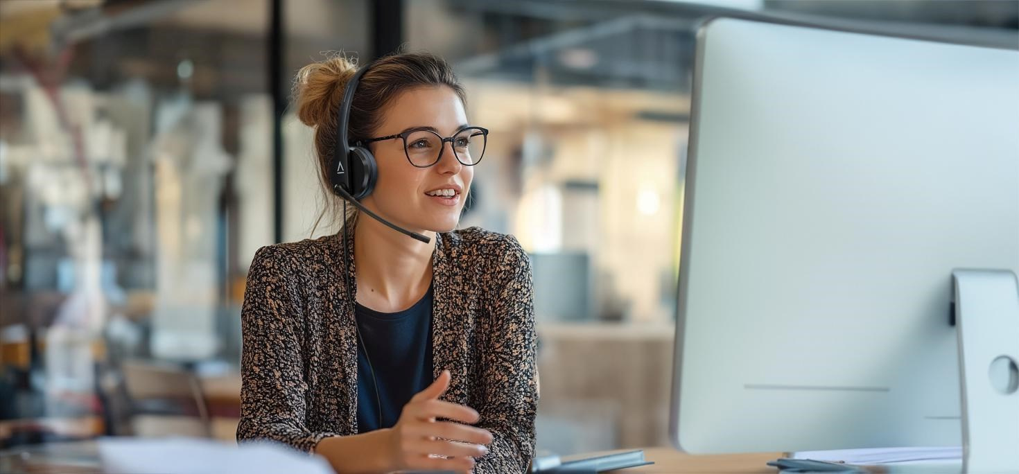 Profesionální náhlavní souprava pro online komunikaci a každodenní pracovní využití.
