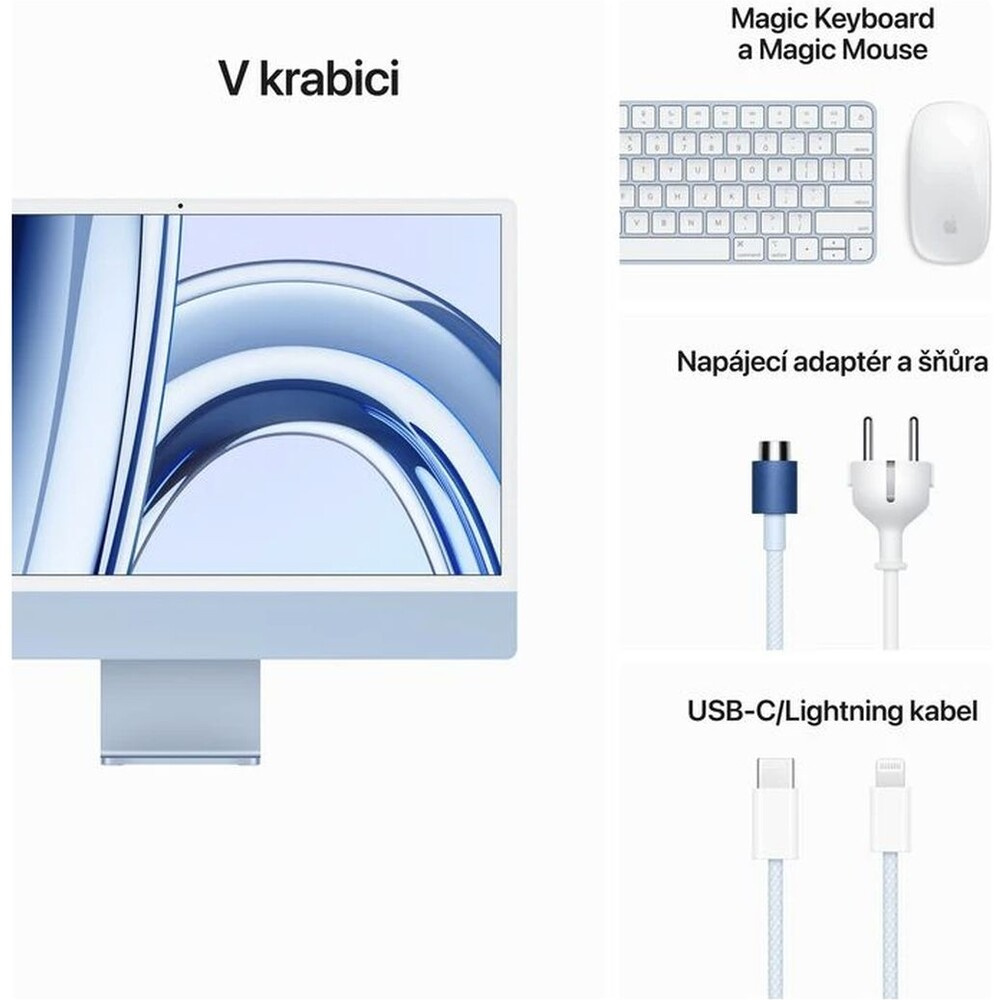 síťový adaptér, Apple Magic Mouse 2, USB kabel Lightning, Apple Magic Keyboard numerická s Touch ID