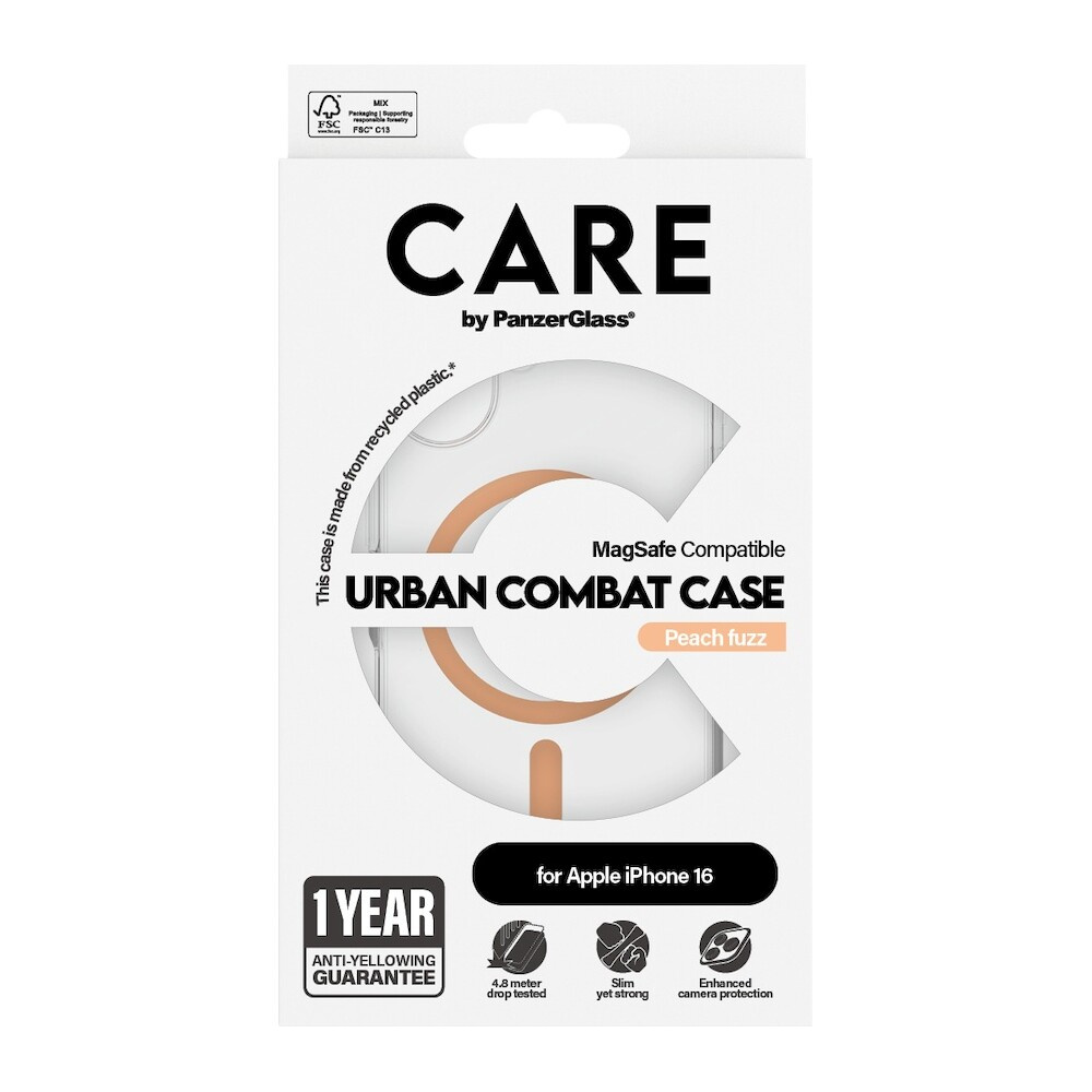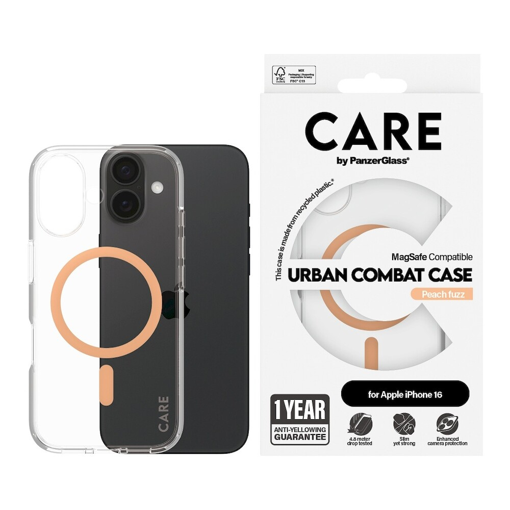 PanzerGlass® CARE kryt Apple iPhone 16 MagSafe Urban Combat čirý/broskvový