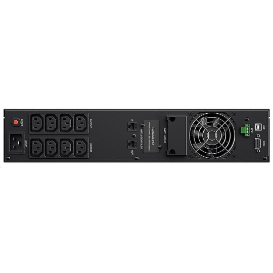 | Dodávka obsahuje | UPS, Uživatelský manuál, Rackmount lišty, Rackmount úchyty, Telefoní kabel, USB kabel, Seriový kabel (RS232), M5X8L (8), M5X12L (12), Plastové podložky (8) Záslepka (12), PowerPanel® Business Edition software CD. Gumové podložky pod UPS(12) |