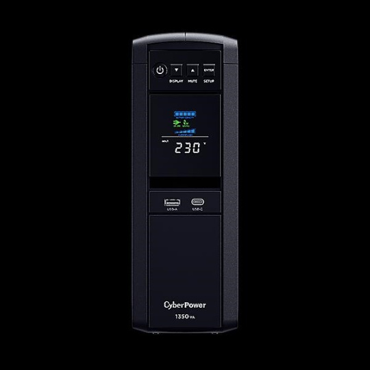 CyberPower CP1350EPFCLCD s výstupem ve tvaru čisté sinusoidy chrání střední až špičkové počítačové systémy, servery a síťový hardware, které používají konvenční zdroje napájení a zdroje s aktivní korekcí účiníku (PFC). Tato UPS navržená s technologií GreenPower UPS™ pro zlepšení provozní účinnosti a minimalizaci spotřeby energie přináší významné úspory nákladů na energii oproti konvenčním systémům UPS. UPS poskytuje automatickou regulaci napětí (AVR) pro udržení stabilního napětí pro připojená zařízení. Produkt je vybaven ochranou datové linky s vysokorychlostním přenosem pro ochranu komunikačního zařízení před přepětím/špičkami a rychlostí datového přenosu 1 Gbps. S naklápěcím barevným LCD panelem mohou uživatelé na první pohled sledovat klíčové informace o napájení a baterii. Software pro správu napájení PowerPanel umožňuje uživateli provádět monitorování a konfiguraci v reálném čase.