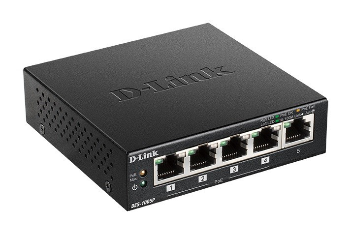 D-Link DES-1005P B1 5-Port 10/100 PoE Desktop Switch, 4x PoE+, 60W pro PoE