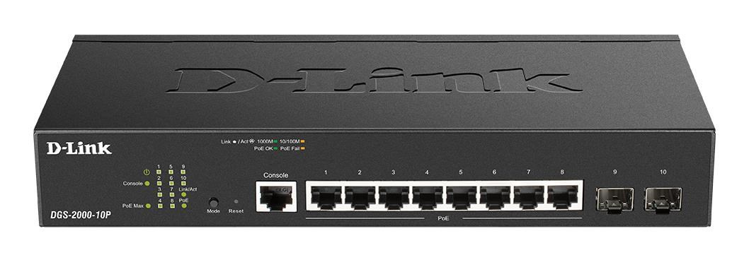 D-Link DGS-2000-10P Managed PoE switch, 8x GbE PoE+, 2x SFP, PoE 65W, fanless