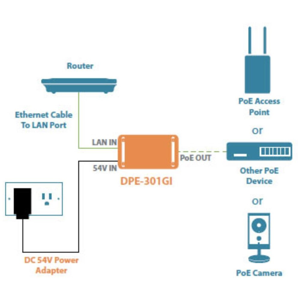 D-Link DPE-301GI 1-port Gigabit 30W PoE+ Injector