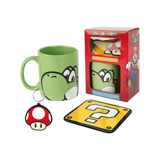 Dárkový set Pyramid International Super Mario - Yoshi (hrnek, podtácek, klíčenka)