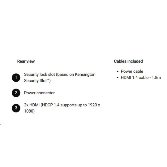 | 2 HDMI port (HDCP 1.4) (Support up to FHD 1920 x 1080 144 Hz as specified in HDMI 1.4) |