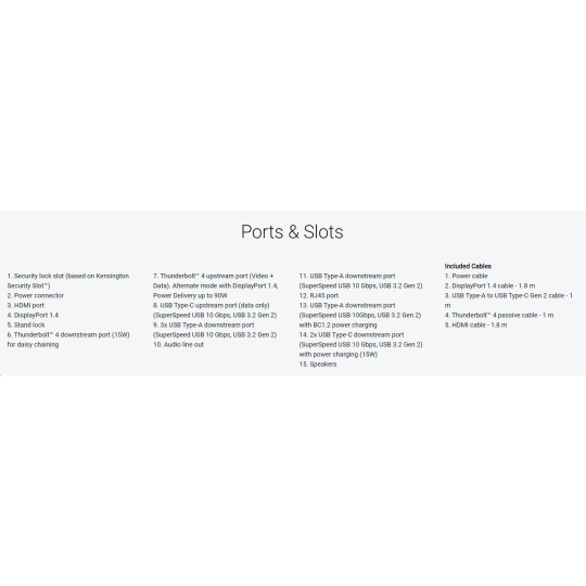 • 1 x Thunderbolt™ 4 downstream port (15 W) for daisy chaining (Video + Data)