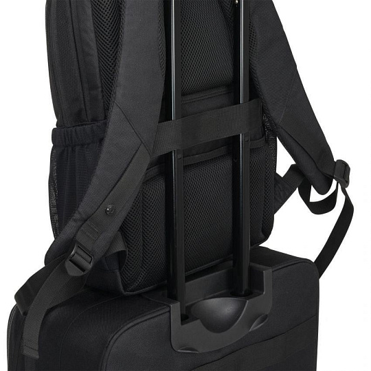Characteristics • Made of 12 recycled PET bottles • 19.5 litre storage space • Lockable notebook compartment, surrounded by High-Density Foam (HDF) as protective padding • Reliable fastening for devices thanks to the elastic notebook securing strap • Spacious main compartment • Padded compartment for tablets measuring up to 12.9" • Expandable inner pocket with fastening strap for headphones • Front pocket with functional compartments for mobile accessories