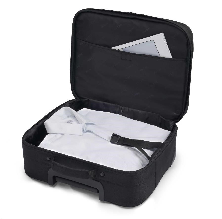Laptop Roller Eco Multi SCALE 14-15.6" This trolley offers unlimited mobility and is the ideal companion for short business or leisure travel. Today's actions shape tomorrow's world. Which is why, here at DICOTA, we are dedicated to developing environmentally friendly solutions and therefore make all the items in our ECO collections out of sustainable, recycled PET. We reuse up to 45 PET bottles, so you will receive an environmentally friendly product with a life-long guarantee. Our PET products also have the quality, look and finish that you know and love. Specifications Art.no.: D31441-RPET EAN: 7640158666401 Weight: 2.4 kg Volume: 22 liter Material: 600D recycled PET Warranty: 24 months Dimension: 420 x 350 x 225 mm Max. Device dimensions: 385 x 265 x 35 mm Characteristics • Made of 14 recycled PET bottles • Lockable cushioned notebook compartment with High-Density Foam (HDF) • Notebook strap and divider • Padded slip pocket for tablets up to 12.9" • Large main compartment for clothes, documents and other luggage • Front pocket with workstation for mobile accessories • Reinforced frame and effective edge protection • High quality exchangeable wheels.