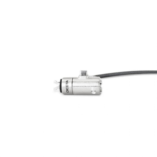 Hlavici T-Lock použijte pro sloty 3x7 mm, Wedge pro sloty 3,2x4,5 mm a Nano pro sloty 2,5x6 mm. Kompatibilní s úzkým bezpečnostním slotem Noble Wedge®, bezpečnostním slotem Kensington® pro T-Bar™ a úzkým bezpečnostním slotem Kensington Nano™*. Dlouhodobé řešení. Díky snadno vyměnitelným hlavičkám můžete v budoucnu zařízení vyměnit a bezpečnostní zámek nadále používat. Rychlé, jednoduché a spolehlivé. Užívejte si velkou flexibilitu při uspořádání svého pracoviště díky hlavici otočné o 90° a cylindrické vložce otočné o 360°. Je to rychlé, snadné a spolehlivé. Opláštěné, vícežilové ocelové lanko je 30 cm dlouhé a mimořádně pevné s průměrem 4,4 mm. Díky praktickému suchému zipu lze ocelové lano srolovat pro kompaktní skladování a přepravu. Tento zámek je v samostatném provedení a nelze jej integrovat do většího uzamykacího systému. Noble Wedge®, Kensington®, T-Bar™ a Kensington Nano Security Slot™ jsou ochranné známky třetích stran, které nemají žádný vztah ke společnosti DICOTA SCHWEIZ AG.