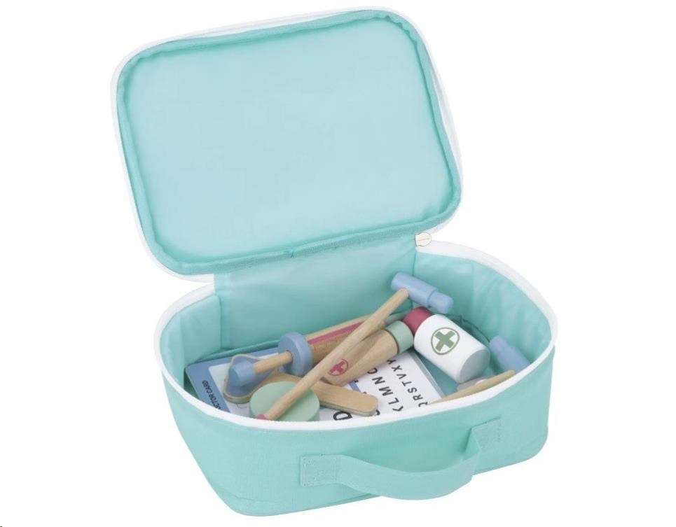 Doktorské vybavení v praktické brašně umožní dětem vyšetřovat pacienty v podobě plyšových hraček, panenek, kamarádů nebo rodičů, stanovit diagnózu a zahájit léčbu. Součástí dětského doktorského setu je základní lékařské vybavení včetně oční tabulky pro vyšetření zraku.