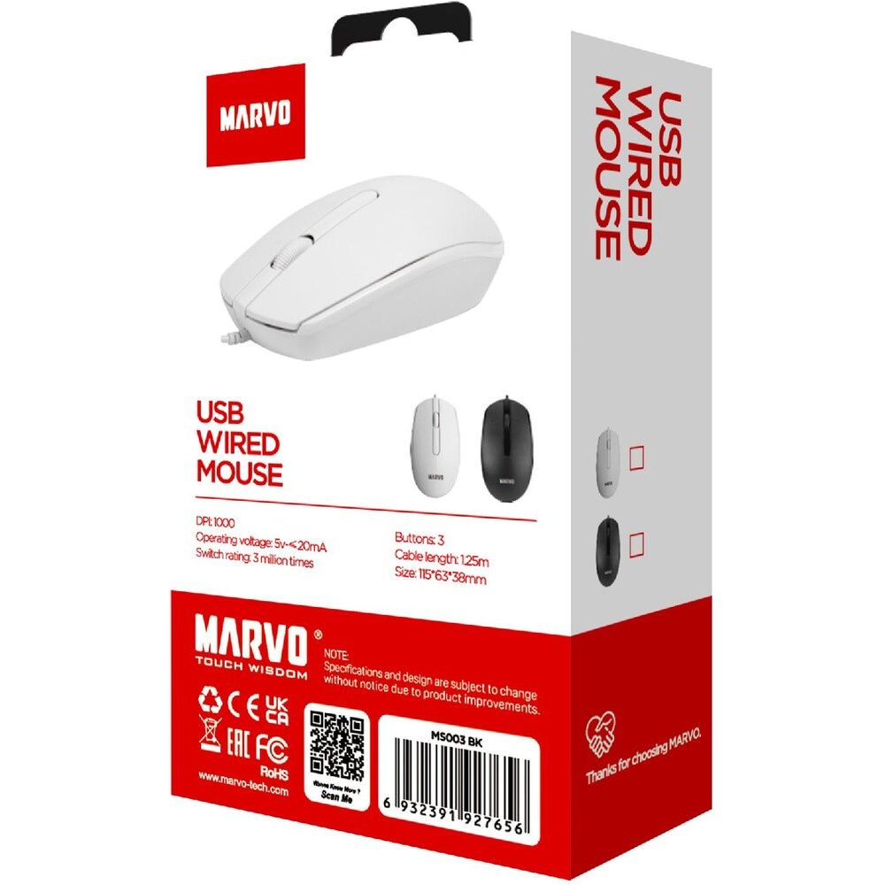 Marvo kancelářská myš MS003 drátová bílá