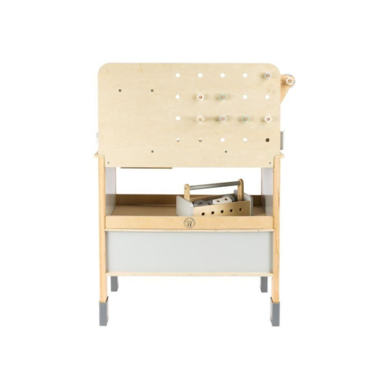Dětský dřevěný ponk XXL se spoustou příslušenství, parádním jeřábem a opaskem na nářadí ZDARMA nadchne každého malého kutila. Dětský ponk v kombinaci šedé barvy s barvou přírodního dřeva, s jeřábem, nářadím, šrouby, destičkami a hlavně se spoustou vychytávek potrénuje jemnou motoriku, manuální zručnost, koordinaci očí a rukou, rozvíjí kreativitu, učí děti soustředit se a trpělivosti..