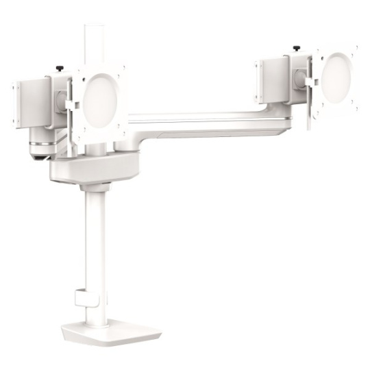 držák pro 2 monitory usnadňuje organizaci pracovního prostoru, zvětšuje prostor na pracovním stole, zmenšuje únavu zraku a zmírňuje svalové napětí ramen a krku vhodný k používání, kdy není vyžadované časté nastavování výšky obrazovky minimalistický, stylový design s vestavěným systémem uspořádání šňůr a kabelů technologie plynových pružin umožňuje snadné nastavení monitoru pro práci a sdílení obrazovky rameno se může otočit o 270° s aretací v poloze 180° max. úhel naklápění + / - 60 ° min. - max. výška 188-632 mm max. náklon nahoru / dolů + 75°/ - 35° min. zatížení jednoho ramene je 9 kg montážní systém VESA, splňuje normy VESA 75 × 75 a 100 × 100 snadná montáž ke stolu pomocí svorky nebo šroubu s okem materiál kov doporučeno Mezinárodní akademií pro ergonomické produkty FIRA™.
