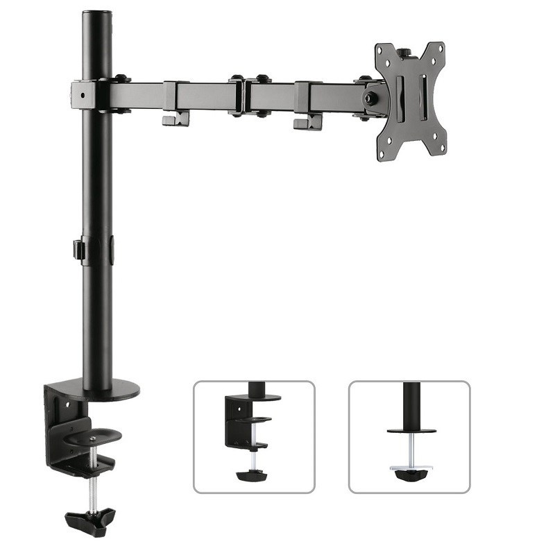 Držák monitoru na stůl Fiber Mounts M7C53 Stolní držák na monitory 13-32", otočný +/-180°, náklon +/-45°, výškové polohování 0-400mm, vedení kabeláže, 2 typy stolních úchytů, VESA 75x75 a 100x100, nosnost 8kg Kvalitní držák na monitor s uchycením na stolovou desku - 2 typy uchycení součástí balení. Držák umožňuje monitor po zavěšení výškově polohovat, otáčet bez omezení do stran, naklápět. Držák podporuje VESA standardy 75x75 a 100x100, nosnost je 8kg. Barevné provedení černé. Balení obsahuje instalační materiál. Kvalitní polohovatelný stolní držák na monitor Fiber Mounts M7C53 Vám umožní monitorem otáčet do stran, naklápět ho, vysouvat dopředu nebo zasouvat k uchycení, výškově polohovat. Technické údaje: nosnost 8kg na monitory s úhlopříčkou 13" až 32" (33cm až 82cm) držák podporuje VESA standardy 75x75 a 100x100 maximální vzdálenost od nosníku 459mm nastavení vzdálenosti od nosníku dle potřeby otáčení do stran dle potřeby +/- 180° nastavení náklonu +/- 45° součástí balení jsou 2 typy úchytů na stolovou desku úchytky na kabeláž solidní kvalita barevné provedení černé záruka 5 let Držák monitoru Fiber Mounts M7C53 podporuje VESA standardy: VESA 75x75 VESA 100x100.
