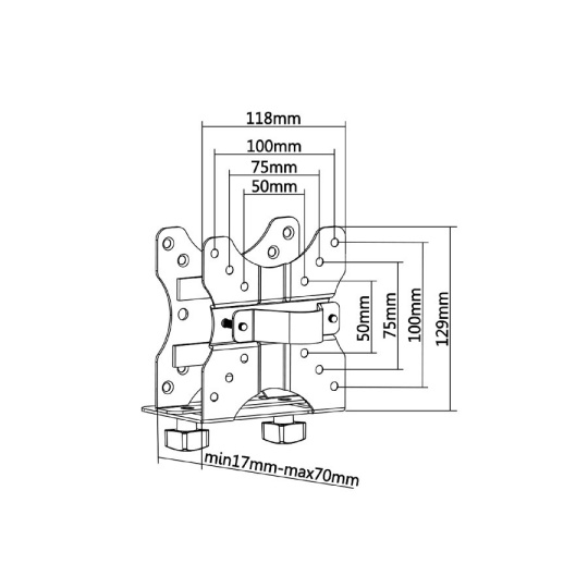 Držák na mini PC NUC Fiber Mounts M7C20 Univerzální držák na Intel NUC, Mini Mac CPU, mini PC a atp. Uchycení na držáky, za monitor, pod stolovou desku, zeď, tyč až 55mm. Nosnost 5kg. Univerzální držák pro uchycení malých PC na držák nebo na stůl. Ideální na Intel NUC, Mini Mac CPU a další podobné malé PC. Držák má nastavitelnou šířku dle potřeby od 17mm do 70mm - PC s větší šířkou jak 70mm není na držák možné uchytit. Držák Fiber Mounts M7C20 je možné uchytit na televizní držák přímo za monitor - podporuje VESA standardy, na nosnou tyč držáku pomocí objímky nebo kdekoliv na stůl. Držák je velmi bezpečný, zatížit ho můžete zařízením o hmotnosti až 5kg. Na držák na Intel NUC poskytujeme záruku 5 let. Univerzální držák na mini PC, NUC, MAC Mini CPU apod, uchycení na držák, za monitor, na stůl nebo na zeď - Fiber Mounts M7C20 Technické údaje: nosnost 5kg nastavitelná šířka držáku 17mm až 70mm ideální na Intel NUC a podobné uchycení na držák, tyč o průměru do 55mm nebo na stůl podporuje VESA standardy 50 / 75 / 100 bezpečná a pevná konstrukce materiál ocel zajišťovací páska pro zajištění CPU na držáku barevné provedení černé záruka 5 let Možnost uchycení na držáky nebo za monitory s VESA standardem: VESA 50x50 VESA 75x75 VESA 100x100 Držák na mini PC, Intel CPU, MAC Mini CPU apod. s uchycením na držák za monitor - Fiber Mounts M7C20 Možnost uchycení na tyč pomocí objímky. Vhodné na tyče o průměru do 55mm. Držák mini PC, Intel NUC, MAC Mini CPU apod, uchycení na tyč o průměru až 55mm - Fiber Mounts M7C20 Možnost uchycení pod stolovou desku nebo i na stěnu..