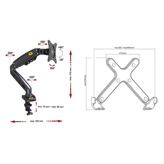 Stolní držák na notebook laptop Fiber Mounts 836F80    Kvalitní stolní držák na notebook nebo laptop 11-17,1", výškové polohování 165-415mm, otočný +/-180°, náklon notebooku 0° až -90°, vzdálenost od uchycení 0-535mm, vedení kabeláže, nosnost 9kg    Unikátní systém pro uložení notebooku a jeho snadnou a rychlou polohovatelnost. Držák Vám umožní notebook výškově polohovat, otáčet do stran, měnit místo na stole kdykoliv, snadno, rychle a pohodlně. Držák je velmi přívětivý ohledně nastavitelnosti. Vhodný je pro uložení jakéhokoliv notebooku s hmotností až 9kg. Na držáku jsou krytky pro možnost skrytého vedení kabeláže.     Možnost uložení notebooku nebo laptopu uvítá každý, kdo s ním denně pracuje - nastavení polohy obrazovky notebooku do úrovně očí (účinné proti bolesti zad, páteře a hlavy). Možnost kombinovat i s držákem monitoru F80 a v případě používání druhého monitoru sjednotit výšku obrazovky notebooku s monitorem.     Stolní držák na notebook laptop do kanceláře pracovny nebo dětského pokoje Fiber Mounts 836F80     Technické údaje:  max. zatížení 9kg uchycení jakéhokoliv notebooku laptopu velikosti 11" až 17,1" šířka notebooku musí být v rozmezí 280mm až 440mm výšková polohovatelnost 250mm (165-415mm) nastavení vzdálenosti od stolního uchycení až 535mm otáčení do stran bez omezení +/- 180° nastavení náklonu notebooku 0° (vodorovně) až -90° (svisle) snadná korekce roviny rychlá a snadná změna polohy notebooku na stole uchycení držáku na hranu stolové desky nebo skrz stolovou desku šroubem vynikající kvalita systém pro skryté vedení kabeláže 2 typy uchycení na stolovou desku (na okraj nebo do prostoru) barva černá záruka 3 roky.