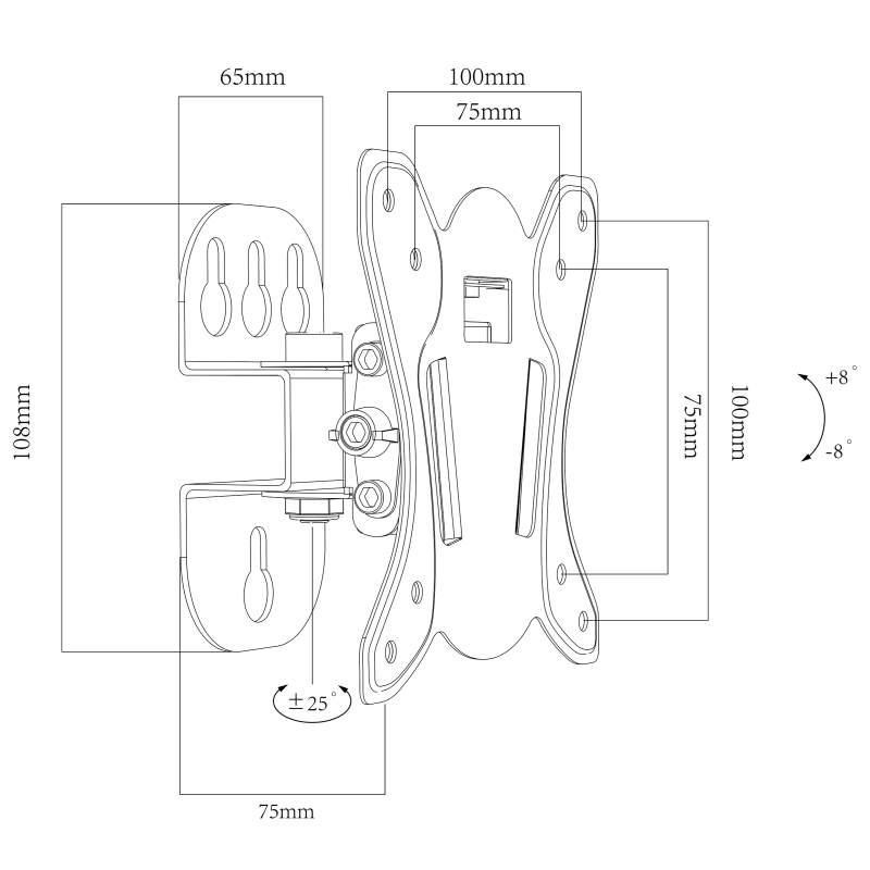 Držák na Tv a monitory 10-30", mírné otáčení do stran +/-25°, naklápění +/-8°, odsazení od zdi 75mm, VESA 75x75 a 100x100, nosnost 25kg.... více