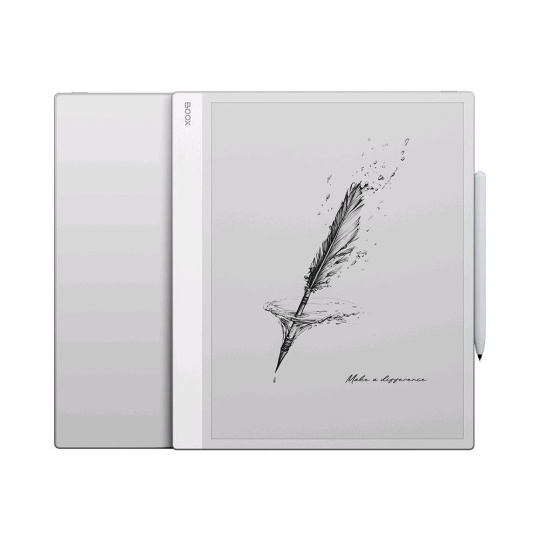 ONYX BOOX Note Max je vysoce výkonná 13,3” E čtečka s rozsáhlými možnostmi pro práci s dokumenty. Jeho obrazovka E Ink Carta Plus (Carta1300) má maximální rozlišení 300 ppi a vyšší kontrast. Kapacitní snímač umožňuje práci v menu, přibližování stránek intuitivním sevřením. Jeho další indukční dotyková vrstva umožňuje kreslit a pořizovat ručně psané poznámky stylusem dodávaným se zařízením. Model má vysoce výkonný 8jádrový procesor s taktem 2,8 GHz. Nový grafický procesor s technologií BOOX Super Refresh poskytuje vysokorychlostní obnovování obrazovky a plynulý pohyb objektů na obrazovce. Note Max je nejen ideální pro čtení, ale je také perfektním nástrojem pro práci s různými typy dokumentů. Operační systém Android 13 vám umožňuje instalovat a používat aplikace třetích stran. Vestavěný Wi-Fi modul umožňuje stahovat e-knihy z internetu a využívat další síťové služby a podpora Bluetooth 5.1 umožňuje připojení externích zařízení. 128 GB vnitřní paměti umožňuje ukládat do zařízení prakticky neomezeně jakékoli potřebné e-knihy a dokumenty. Jeho baterie o kapacitě 3700 mAh zajišťuje dlouhotrvající autonomní práci. Tento model nemá vestavěné podsvícení obrazovky a je navržen pro práci s externím osvětlením. Tělo Note MAX je vyrobeno z lehké a odolné slitiny hliníku a hořčíku, displej je krytý přídavným ochranným sklem.