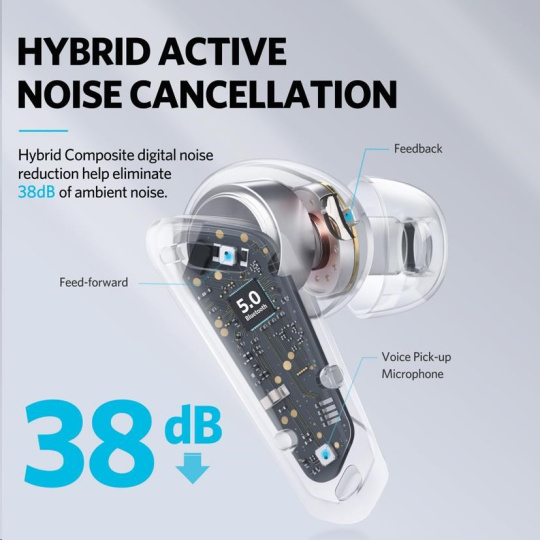 - QuietSmart™ Hybrid Active Noise Cancellation up to 38dB