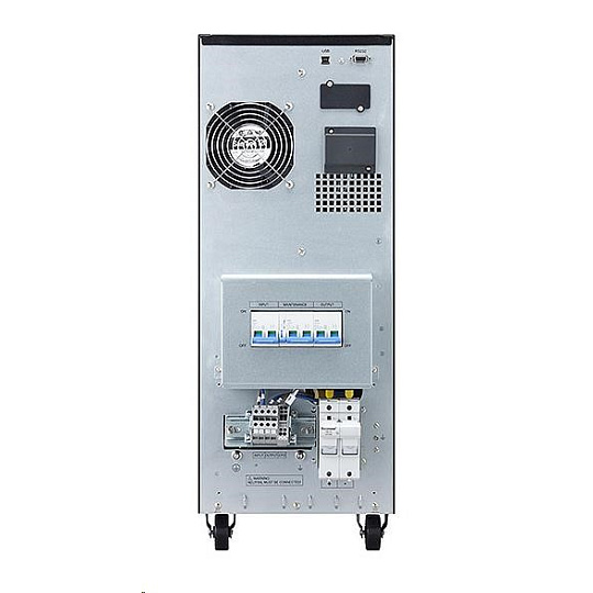 | Zvláštní charakteristiky | Topologie dvojité konverze Neustále monitoruje kvalitu vstupního napájení a reguluje napětí a frekvenci na výstupu Poskytuje větší činný výkon (ve wattech) pro lepší ochranu zařízení s účiníkem 0,9 Energeticky úsporný, snižuje náklady na energii a chlazení Interní bypass zajišťuje kontinuitu provozu v případě poruchy UPS Grafický LCD displej nové generace Síťová karta a sada pro montáž do racku je standardní součástí Kompatibilní s virtuálním prostředím (VMware, Hyper-V, Citrix Xen, Redhat) Měření spotřeby energie (na úrovni systému UPS) Paralelní provoz využívající technologii HotSync Baterie vyměnitelné za provozu |