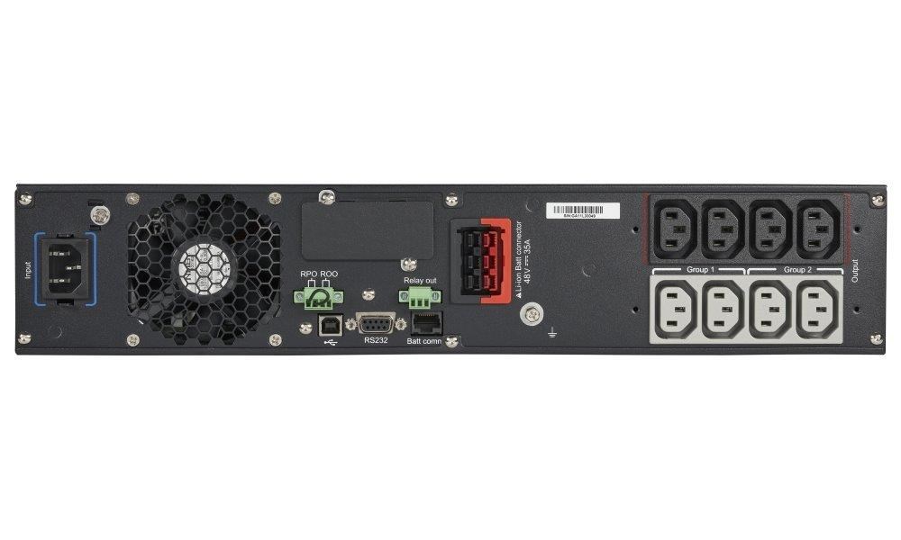 | Zvláštní charakteristiky | Lithium-iontové baterie Topologie dvojité konverze Neustále monitoruje kvalitu vstupního napájení a reguluje napětí a frekvenci na výstupu První systém UPS ve své kategorii poskytující jednotkový účiník (VA = W) S certifikátem Energy Star poskytuje nejvyšší úroveň účinnosti pro snižování nákladů na energii a chlazení Interní bypass zajišťuje kontinuitu provozu v případě poruchy UPS Grafický LCD displej nové generace Kompatibilní s virtuálním prostředím (VMware, Hyper-V, Citrix Xen, Redhat) Kalkulace spotřeby energie (až po oddělené skupiny zásuvek) Dlouhá doba zálohy s až 4 volitelnými EBM |