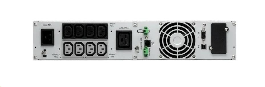 | Obsah balení | UPS Vstupní kabel (2) Výstupní IEC-IEC kabely USB kabel Sériový kabel (2) držáky pro montáž do 19' rozváděče (2) Sada pro montáž do skříně Bezpečnostní pokyny Stručná příručka |