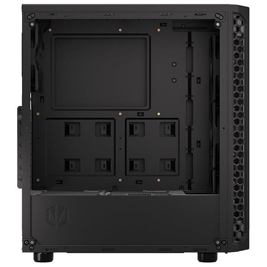 Skříň formátu Middle Tower s průhlednou bočnicí z tvrzeného skla nabízí dvě 2,5" pozice pro SSD disky a dvě 3,5" pozice pro pevné disky. Na horní části se nachází dva USB 3.0 porty, sluchátkový výstup a audio vstup pro mikrofon. Vybavena je čtyřmi 120 mm ventilátory, které spolu s perforovaným čelním panelem zajišťují dostatečné proudění vzduchu. Důmyslné řešení umožňuje pohodlné umístění až 360 mm dlouhého výměníku vodního chlazení na přední straně. Ve skříni je dostatek prostoru pro chladič CPU do výšky až 161 mm a grafickou kartu o délce až 350 mm. Dodávána je bez zdroje. Součástí je také sada prachových filtrů.