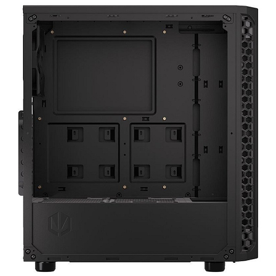 Skříň formátu Middle Tower nabízí dvě 2,5" pozice pro SSD disky a dvě 3,5" pozice pro pevné disky. Na horní části se nachází dva USB 3.0 porty, sluchátkový výstup a audio vstup pro mikrofon. Vybavena je jedním 120 mm ventilátorem, který spolu s perforovaným čelním panelem zajišťuje dostatečné proudění vzduchu. Důmyslné řešení umožňuje pohodlné umístění až 360 mm dlouhého výměníku vodního chlazení na přední straně. Ve skříni je dostatek prostoru pro chladič CPU do výšky až 161 mm a grafickou kartu o délce až 350 mm. Dodávána je bez zdroje. Součástí je také sada prachových filtrů.