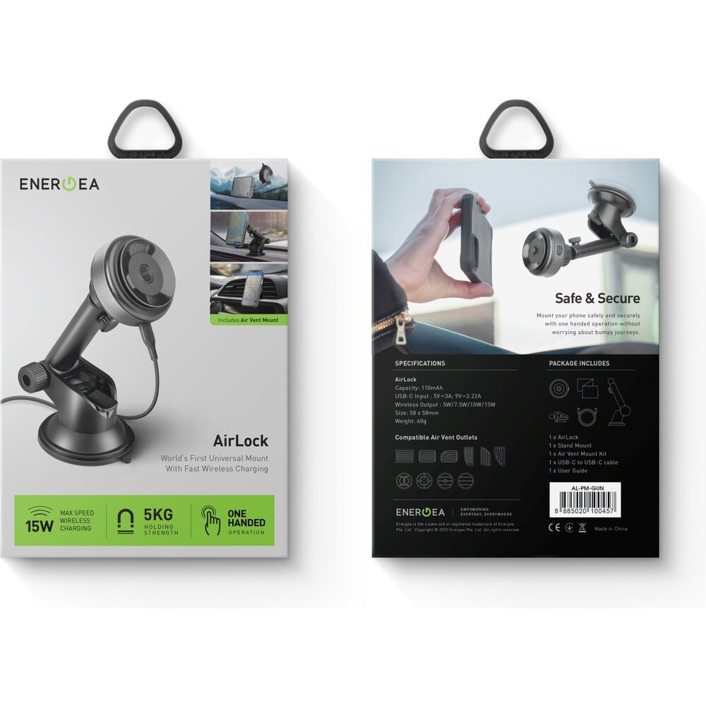 ENERGEA AirLock univerzální držák do auta s nabíjením (15W) šedý