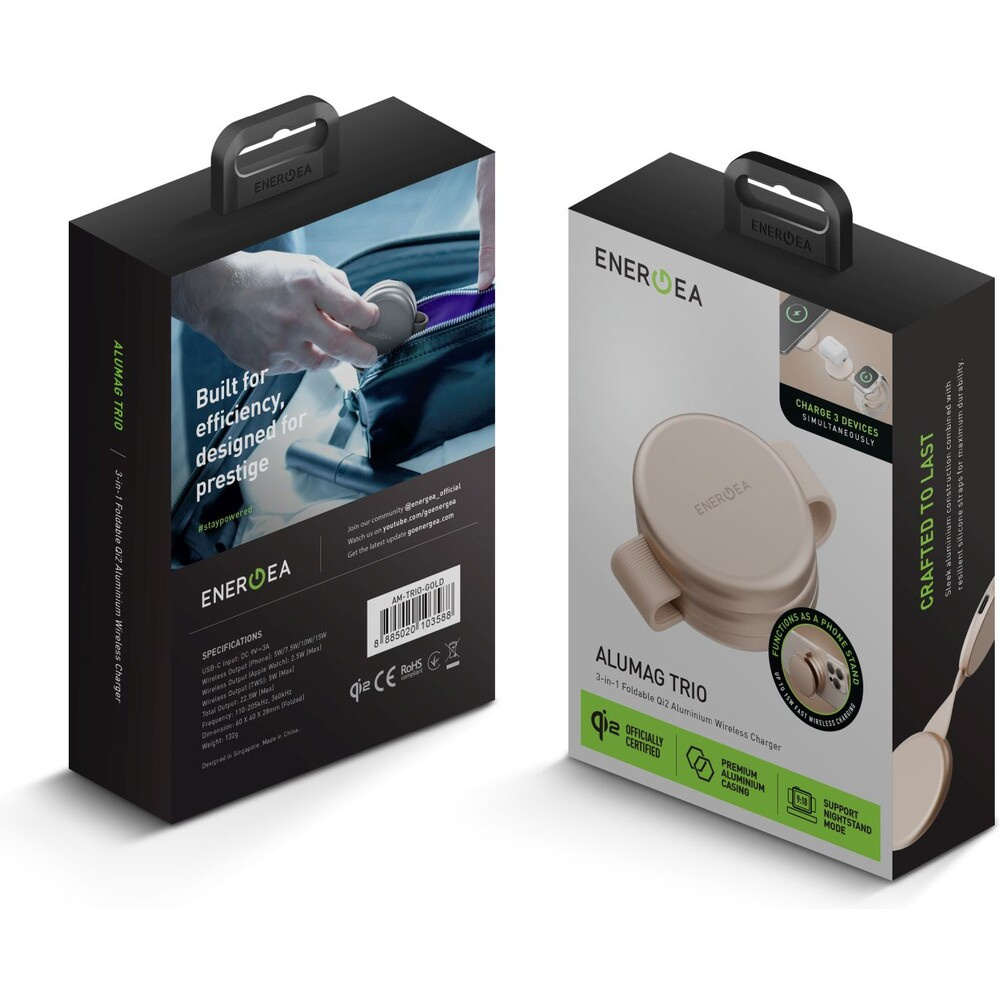 ENERGEA AluMag Trio 3v1 Foldable (Qi2) hliníková MagSafe nabíječka 15W zlatá
