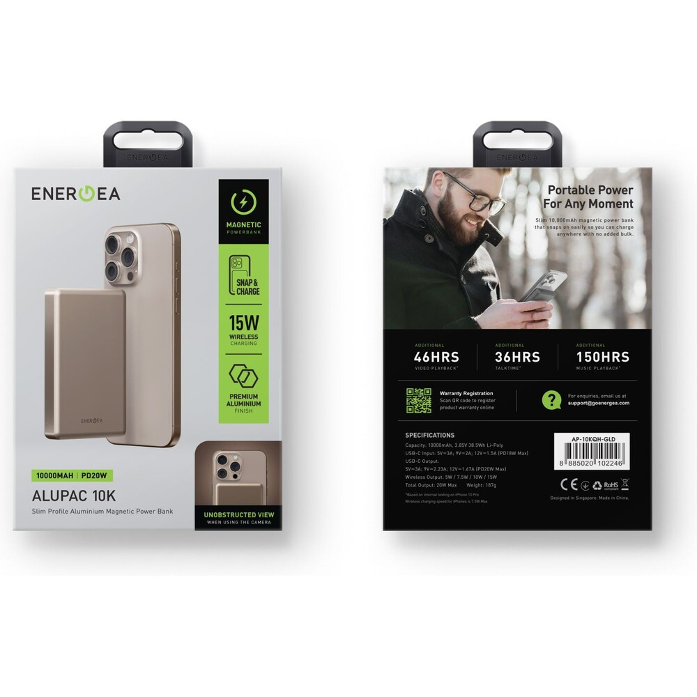 ENERGEA AluPac 10K MagSafe hliníková powerbanka, 10000mAh, zlatá