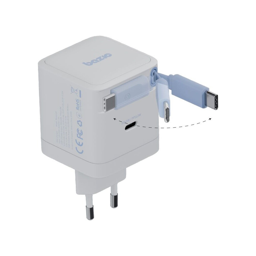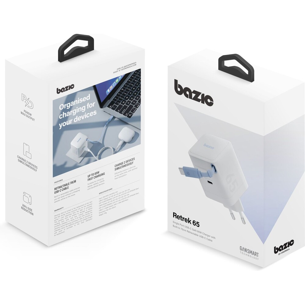 ENERGEA Bazic GoPort GaN nabíječka s integrovaným USB-C zatahovacím kabelem (65W) bílá