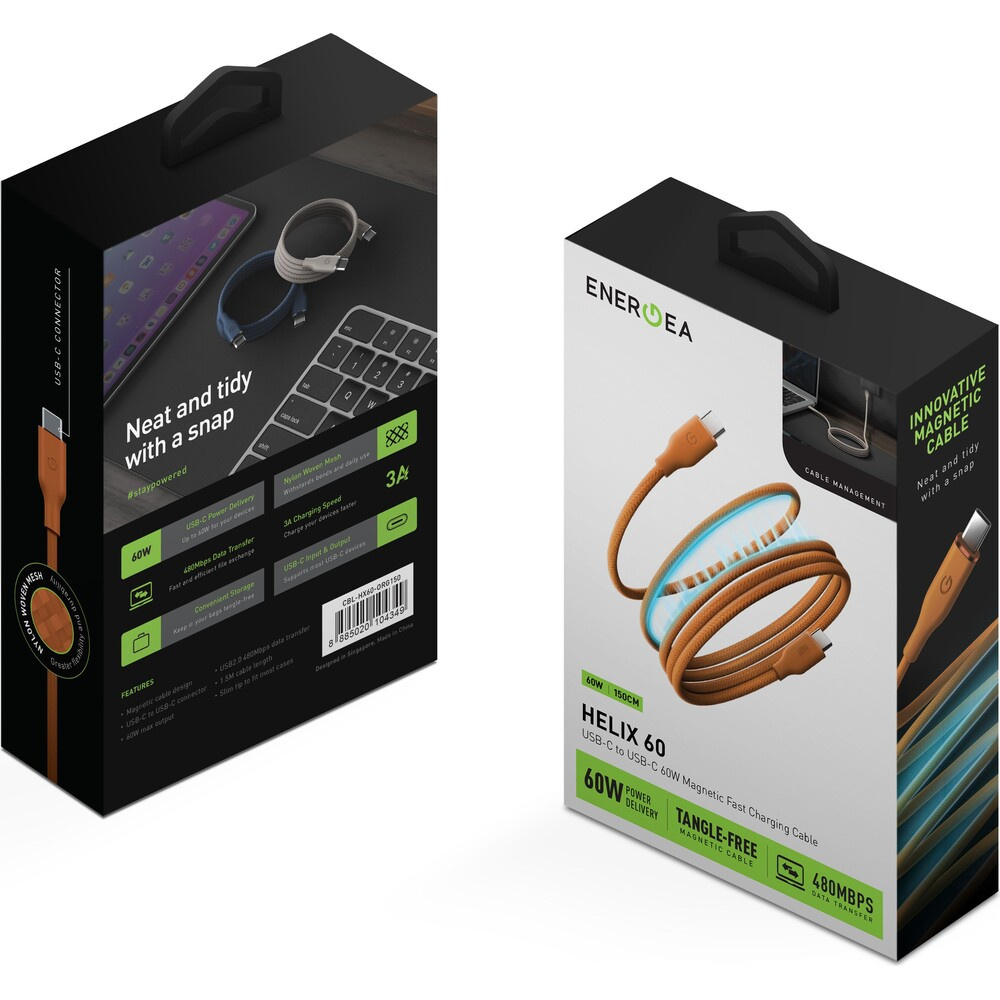 ENERGEA Helix 60W USB-C magnetický kabel (480Mbps), 1,5 m, oranžový