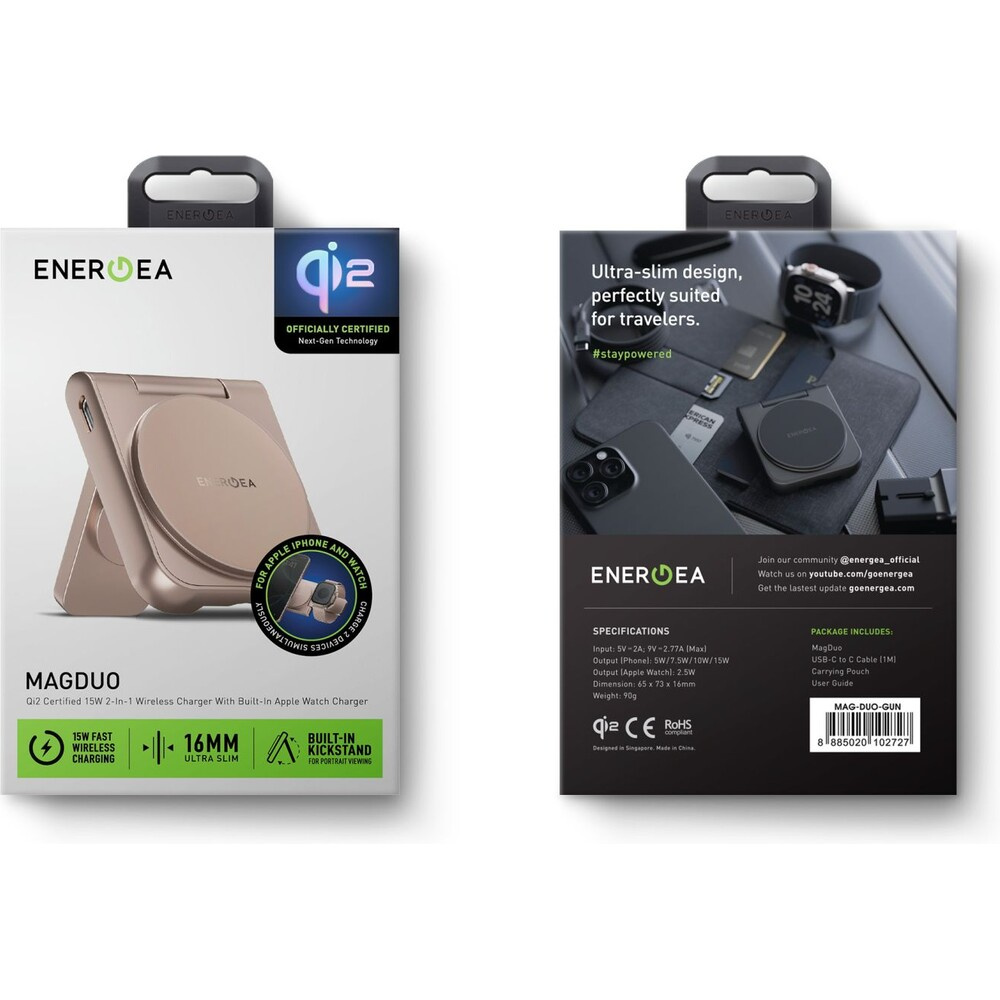ENERGEA MagDuo 2v1 Foldable (Qi2) MagSafe nabíječka zlatá