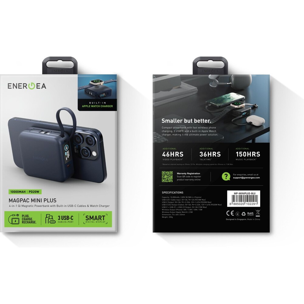 ENERGEA MagPac Mini Plus MagSafe powerbanka s kabelem, 10000mAh, modrá