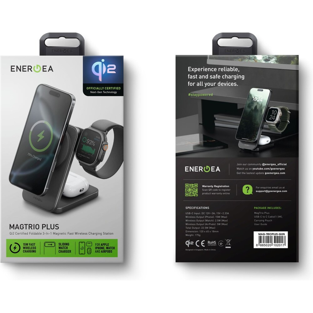 ENERGEA MagTrio Plus 3v1 Foldable (Qi2) MagSafe nabíječka černá