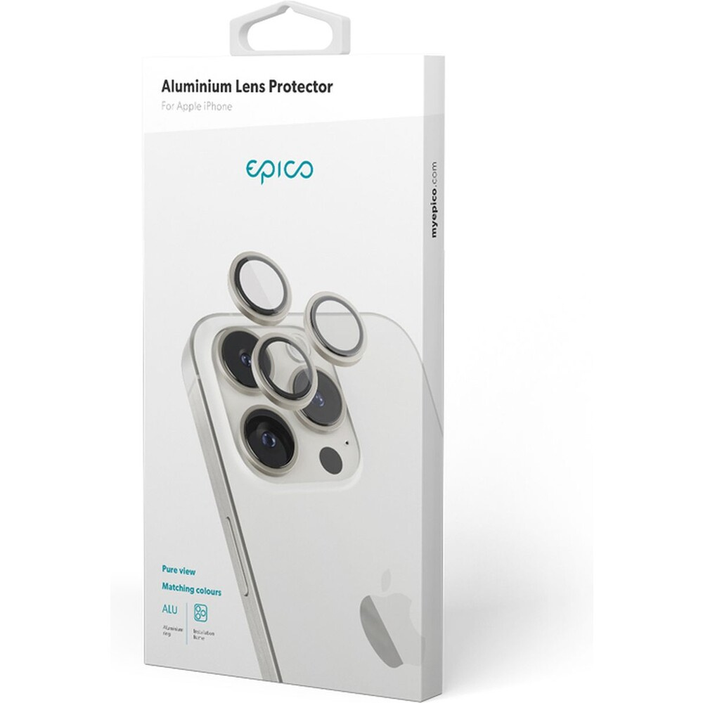 Epico hliníkové ochranné sklo na čočky fotoaparátu pro iPhone 15 Pro / 15 Pro Max stříbrná