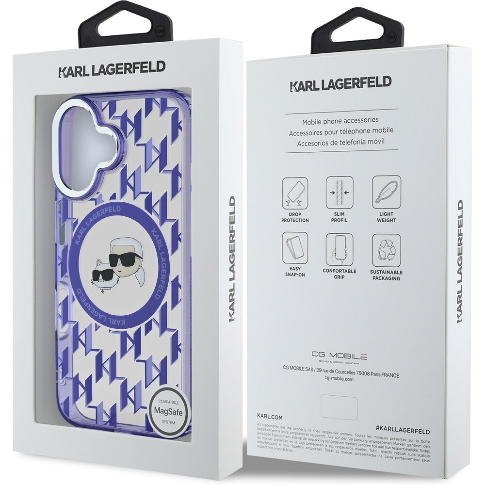 Karl Lagerfeld IML Monogram K&CH Heads MagSafe kryt pro iPhone 16 fialový